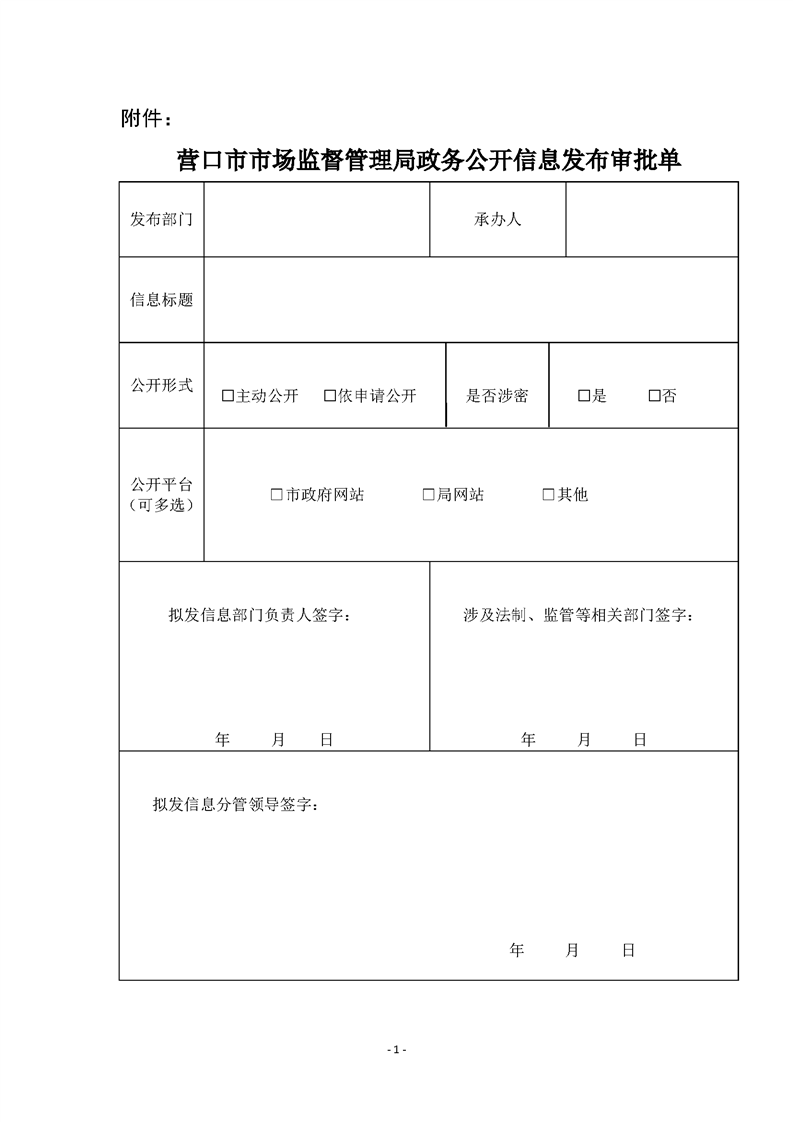 附件:营口市市场监督管理局政务公开信息发布审批单