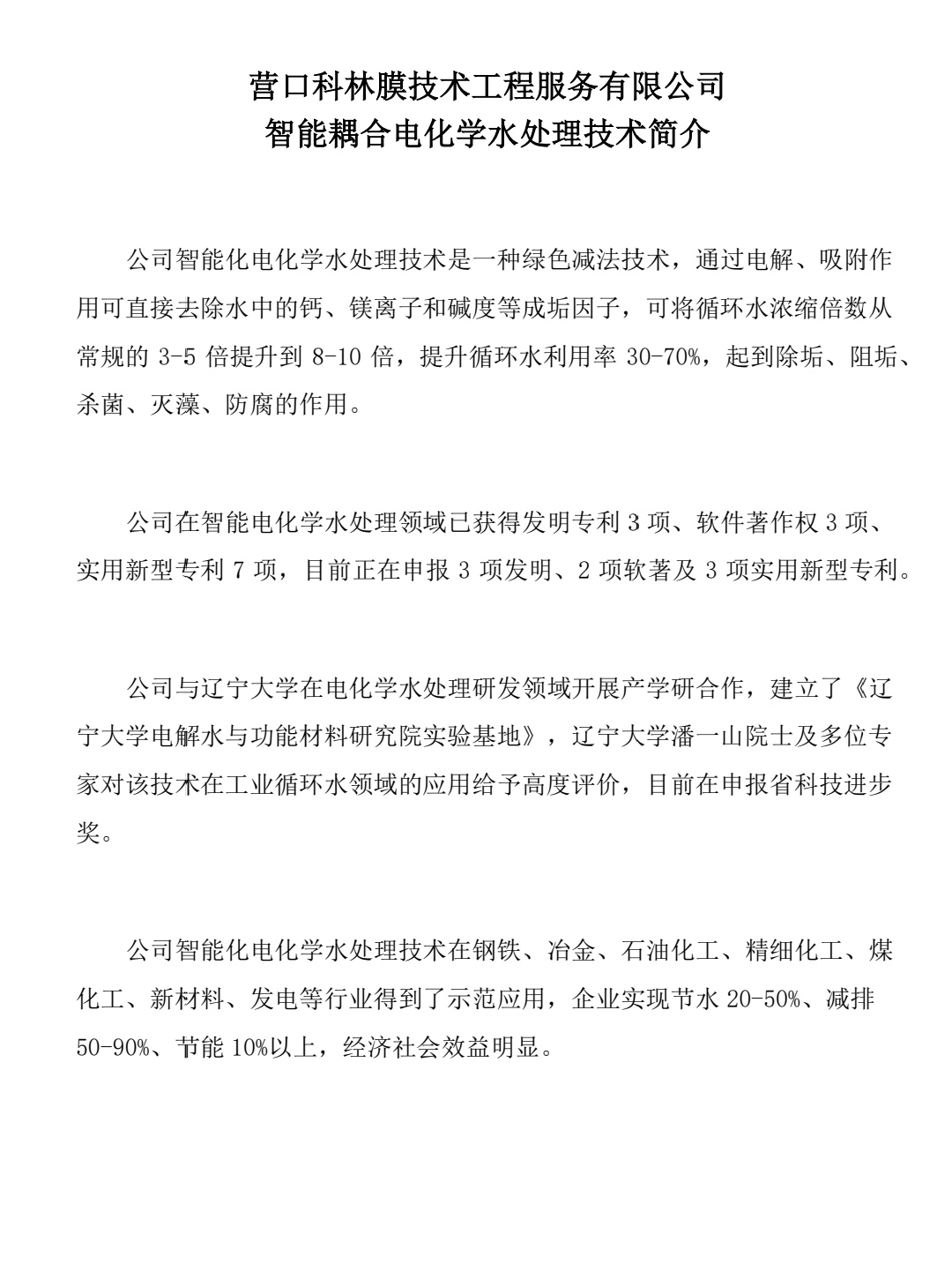 营口科林膜技术工程服务有限公司智能耦合电化学水处理技术简介